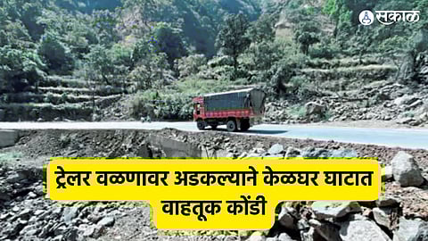 केळघर : येथील घाटात आज दुपारी महाबळेश्वरकडून साताऱ्याकडे जाणारा मोठा ट्रेलर अडकल्याने घाटात सुमारे अर्धा तास दोन्ही बाजूने वाहतूक ठप्प झाली होती. याचा फटका महाबळेश्वरकडे जाणाऱ्या पर्यटकांना बसला.