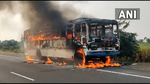 बस चालक आणि कंडाक्टरला बस मधून धूर निघताना दिसला, त्यानंतर सर्व प्रवाशांना बसमधून ताबडतोब खाली उतरवण्यात आले. प्रवासी खाली उतरल्यानंतर संपूर्ण बसने पेट घेतला, आगीच्या घटनेत कोणीही जखमी झाले नाही. आगीचे नेमके कारण अद्याप समजू शकलेले नाही.