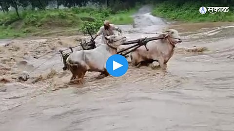 Yavatmal News: यवतमाळमध्ये एका शेतकऱ्याने नको ते धाडस दाखवलं आहे. नाल्याचं पाणी पुलावरुन वाहात असताना त्याने वाहात्या पाण्यात बैलगाडी घातली. त्यामुळे बैलगाडी नाल्यामध्ये वाहून गेली. दोन्ही बैलं कसेबसे पोहत-पोहत काठावर आले. गाडीवाणानेही स्वतःला वाचवलं. परंतु गाडीच्या मागे बांधलेली गाय आणि एक गोरा वाहून गेला आहे.