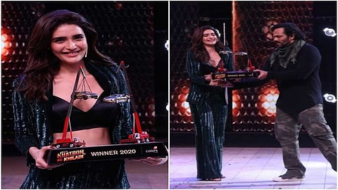 मुंबई : कलर्स वाहिनीवरील 'खतरों के खिलाडी' या कार्यक्रमाच्या दहाव्या सीझनमध्ये अभिनेत्री करिश्मा तन्नाने बाजी मारली आहे. या ट्रॉफीसाठी करिष्मा तन्ना, कोरिओग्राफर धर्मेश येलांडे आणि करण पटेल यांच्यात अंतिम लढत झाली आणि त्यात करिष्माने बाजी मारली. करिश्माने तिचे बहुतेक स्टंट जिंकले आणि या रिअॅलिटी शोमध्ये रोलर कोस्टर राईडचा प्रवास केला.