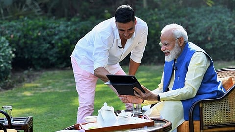 अक्षयने या मुलाखतीदरम्यान, पंतप्रधान नरेंद्र मोदी यांचेदेखील कौतुक केलं. या मुलाखतीदरम्यान कान्स संदर्भात चर्चा सुरु होती. बॉलीवूड चित्रपटांना आता जागतिक स्तरावर खूप ओळख मिळत आहे आणि त्यासाठी मी देशाचे पंतप्रधान नरेंद्र मोदी यांचे आभार मानू इच्छितो की त्यांनी देशाला आंतरराष्ट्रीय स्तरावर एक विशेष ओळख मिळवून दिली. अशा शब्दात अक्षय कुमारने पीएम मोदींचे कौतुक केलं.
