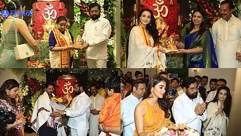 याप्रसंगी अभिनेत्री पूजा हेगडेसोबतच अनेक अभिनेत्रींना हजेरी लावली होती. यावेळी सर्व कलाकारांनी गणपतीची आरती करत बाप्पाचे आशिर्वाद घेतले. तर शिंदेकडून सर्वांना गणपती बाप्पाची मूर्तीही भेट म्हणून देण्यात आली. सध्या सोशल मीडियावर सर्व कवाकारांचे फोटो आणि व्हिडिओ व्हायरल होत आहे.