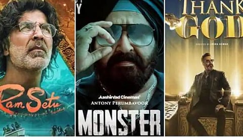 Box office:दिवाळीच्या शुभमुहर्तावर सिनेरसिकांसाठी सिनेमांची मेजवानी असणार आहे. वेगवेगळ्या विषयांचे सिनेमे आपल्या भेटीस येत आहेत. एकीकडे जिथे ओटीटी वर काही सिनेमे आणि सिरीज रिलीज होणार आहेत तिथे दुसरीकडे प्रेक्षकांना थिएटरपर्यंत घेऊन येण्यासाठी मेकर्सनी पूर्ण तयारी केली आहे. २५ ऑक्टोबरला अक्षयचा 'रामसेतू' आणि अजय देवगणचा 'थॅंक गॉड' रिलीज होणार आहे. दोन्ही सिनेमे बॉक्स ऑफिसवर एकमेकांना टक्कर देणार असल्यानं आधीपासूनच चर्चेत आहेत,त्या दरम्यान आता एका दाक्षिणात्य सिनेमानं देखील त्याच दिवशी रिलीज व्हायचं ठरवलंय असं कळतंय.(Boxoffice clash of 'ajay devgan' Thank God, Akshay Kumar 'Ram Setu' and Mohanlaal 'Monster')