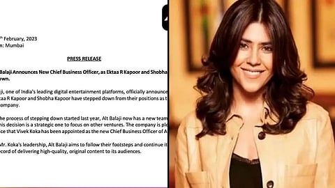 एकताने इंस्टाग्रामवर शेअर केलेल्या प्रेस रिलीजमध्ये असे लिहिले आहे की, आज अधिकृतपणे एकता कपूर आणि शोभा कपूर यांनी Alt Balaji कंपनीच्या प्रमुखपदाचा राजीनामा दिला आहे. त्यांची राजीनामा देण्याची प्रक्रिया गेल्या वर्षीच सुरू झाली होती. ALTBalaji कडे आता नवीन टीम आहे. तिच्या इतर प्लॅटफॉर्मवर लक्ष केंद्रित करण्यासाठी एकताने हा निर्णय घेतला आहे