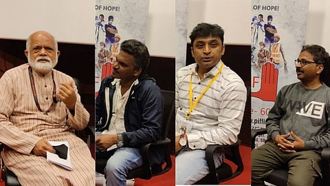 ‘पिग’ या तमिळ चित्रपटाचे दिग्दर्शक थमीज, ‘पिंकी एली?’ या कानडी चित्रपटाचे कला दिग्दर्शक रामचंद्र होसूर, ‘कंदील’ या मराटी चित्रपटाचे दिग्दर्शक व निर्माते महेश कंद आदी या वेळी उपस्थित होते. ‘पिग’ हा चित्रपट ग्रामीण भागातील जातीव्यवस्थेवर भाष्य करणारा आहे असे सांगत दिग्दर्शक थमीज म्हणाले, “खालच्या जातीतील आजोबा व नातू यांचे नाते उलगडत असताना समाजातील जातीव्यवस्था व भेदभावांवर बोट ठेवण्याचा प्रयत्न आम्ही केला आहे. तामिळनाडूमध्ये उच्च जातीमध्ये कोंबडी, शेळीचे मांस खाण्याची तर तुलनेने खालच्या जातीत डुक्कराचे मांस खाण्याची पद्धत आहे. मात्र एका उच्च जातीतील व्यक्तीला डुक्कराचे मांस खाण्याची इच्छा होते. ते तयार करण्याची जबाबदारी खालच्या जातीतील आजोबा आणि नातवावर पडते. हे जेवण बनत असताना घडणा-या घटना चित्रपटात दाखविल्या आहेत.”