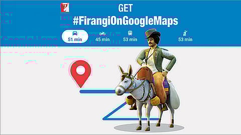 'ठग ऑफ हिंदुस्तान'च्या संचाने 'गुगल मॅप'बरोबर एक अभिनव योजना आखली आहे. ही योजना गुरुवारपासून (ता.1) अमलात आली आहे. यामध्ये प्रवासी आपल्या अँड्रॉईड किंवा "आयएसओ' स्मार्टफोनवर फिरंगीच्या मदतीने गाडी चालविण्याचा पर्याय निवडू शकतील. आमीर खानचा हा फिरंगी आपल्या पाळलेल्या गाढवावर बसून मार्गदर्शन करणार आहे.