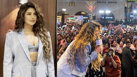प्रियंका मुंबईत एका कार्यक्रमात दिसली. एका पापाराझीने तिचा कार्यक्रमात एन्ट्री करताना आणि कॅमेऱ्यांसमोर पोज देतानाचा व्हिडिओ शेअर केला आहे. प्रियंकाने ग्रे रंगाचा सूट घातला होता,ज्यात ती कमाल दिसत होती. यावेळी कुरळ्या मोकळ्या केसांमध्ये अगदी मोजकाच मेकअप करून प्रियंकानं आपला लूक पूर्ण केला होता.