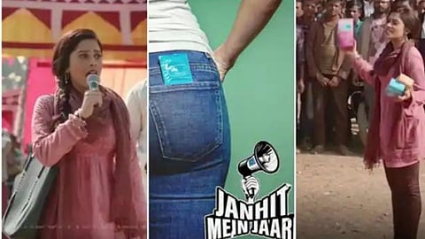 'जनहित में जारी' सिनेमात नुसरत भरुचा सेल्सवुमन(Saleswoman) बनलेली दिसत आहे. सिनेमाच्या टीझरच्या सुरुवातीला नुसरत म्हणतेय,''रात रंगीन,मजे,प्लेजर...हेच सगळं पाहून आपण ४० हून १४० करोड झालो आहोत''. आणि त्यानंतर नुसरत टीझरमध्ये दुकानांपासून रस्त्यावरील प्रत्येकाला कंडोम विकताना दिसत आहे. व्हिडीओत एक वृद्ध व्यक्ती नुसरतला म्हणतेय,'तिसऱ्या माळ्यापर्यंत चढू शकशील?'. तेव्हा नुसरत म्हणते,''चाचा,आमच्या कंपनीचा कंडोम आहे त्याचा मी प्रचार करतेय''.