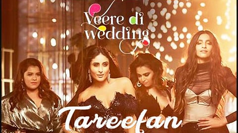 वीरे दी वेडींग या सिनेमाचे 'तारीफां' हे गाणं सध्या युट्युबवर रिलिज करण्यात आले आहे. रॅप गायक बादशाह यानं गायलेलं हे गाणं आहे. या गाण्यात तोही दिसत आहे. बादशाहच्या बॅश सोबत या गाण्यात सोनम कपूर आणि करीना कपूर यांचा बोल्ड पॉट लूक व्युवर्सचे आकडे वाढवतोय.
