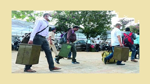 औरंगाबाद विभागाच्या पदवीधर मतदारसंघाच्या निवडणुकीसाठी प्रशासनाकडून पूर्ण तयारी केली आहे. सोमवारी (ता. ३०) चिकलठाणा एमआयडीसीतील कलाग्राम येथे मतदान प्रक्रियेसाठीचे साहित्य वाटप करण्यात आले. मतदानासाठी लागणारे साहित्य घेऊन मतदान कर्मचारी मतदान केंद्रावर दाखल झाले. शहर आणि परिसरातील मतदान केंद्रावर पोलिंग पार्टींना शहर बसेसमधून केंद्रांवर नेऊन सोडण्यात आले.