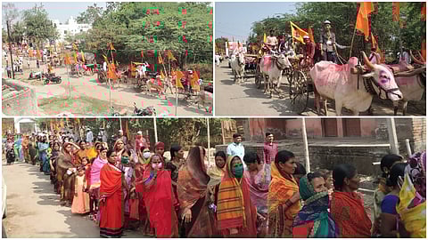 या आंदोलनाची सुरवात गावातून रॅली काढून करण्यात आली. या रॅलीत २५ बैलगाड्या, २४ ट्रॅक्टर, वीस दुचाकी, लेझीम पथकाचा समावेश होता. या रॅलीत महिलांचा लक्षणीय सहभाग होता. महिला, मुली, पुरुष, तरुण या रॅली मोठ्या प्रमाणावर सहभागी झाले होते. यावेळी संपूर्ण गावा एक मराठा लाख मराठा, आरक्षण आमच्या हक्काचं आशा विविध घोषणांनी दुमदुमून निघाले होते. या रॅली दरम्यान पोलिस बंदोबस्त ही मोठ्या प्रमाणात तैनात करण्यात आला होता.