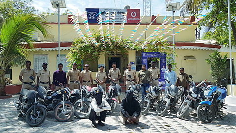 गंगापूर : येथील पोलिसांनी शासकीय वाहन न वापरता खासगी वाहनाचा आधार घेऊन दुचाकी चोरणार्या टोळीचा पर्दाफाश केला. पोलिस ठाण्यात दाखल मोटार सायकल चोरीचा गुन्हयाचे तपासात पोलीसांनी ही धडक कामगिरी बजावली. यात अकरा दुचाकी जप्त करत आरोपींना जेरबंद केले.
