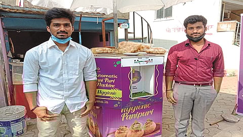 औरंगाबाद : चटपटीत खाद्य असलेली पाणीपुरी सर्वांच्या आवडीची आहे. अनेकदा पाणीपुरी अस्वच्छतेमुळे आजारालाही आमंत्रण देत असते. यामुळेच स्वच्छता असलेल्यांकडेच खवय्ये पाणीपुरी खात असतात. अशांची स्वच्छता बाळगत मानवी हस्तक्षेप टाळत बी. टेक. झालेले समीर व प्रतीक पितळे यांनी पाणीपुरीचे एटीएम मशीन तयार केले आहे. सेन्सरयुक्त असलेले हे नवीन यंत्र सर्वांच्या कुतूहलाचा विषय ठरत आहे.