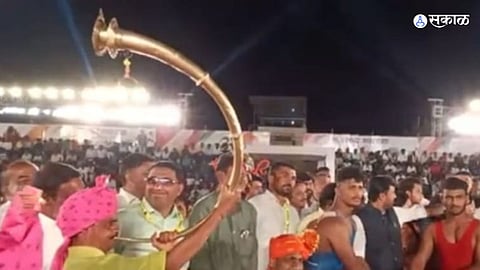 उदगीर : शहरातील तालुका क्रिडा संकुलाच्या मैदानावर स्वर्गीय खाशाबा जाधव चषक राज्यस्तरीय कुस्ती स्पर्धेचे आयोजन करण्यात आले होते. शनिवारी (ता.९)सांयकाळी ७ वाजता स्व. खाशाबा जाधव राज्यस्तरीय कुस्ती स्पर्धेचे उद्घाटनावेळी आजित पवार गटाचे कॅबिनेट मंत्री संजय बनसोडे यांचे आगमन होताच तुतारी वाजवून जोरदार स्वागत करण्यात आले.