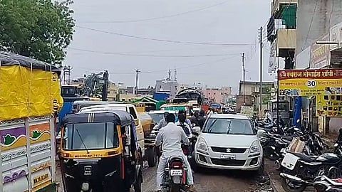 बिडकीन : बिडकीन शहरात (Bidkin) निलजगाव फाटा (Nilajgaon Phata) ते शेकटा फाटा अशा जलवाहिनीचे काम सुरू आहे. जलवाहिनीचे काम धिम्या गतीने सुरू असल्यामुळे रस्त्यावर वाहनांच्या लांबलचक रांगा लागत आहेत. नोकरवर्ग, शालेय विद्यार्थी, गावकरी, वाहनधारकांना नाहक त्रास सहन करावा लागत आहे.