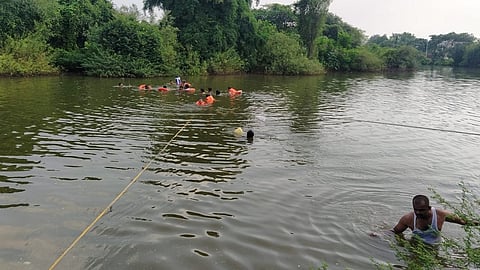करमाड (जि.औरंगाबाद) : जडगाव (ता.औरंगाबाद) (Aurangabad) येथील नातेवाईकांना भेटण्यासाठी जात असताना वळण रस्त्याचा अंदाज न आल्याने गावाशेजारील कोल्हापुरी बंधार्यात कार बुडुन एकाच कुटुंबातील चौघे बुडाल्याची शक्यता वर्तविण्यात येत आहे. ही घटना मंगळवारी (ता.12) दुपारी अडीच वाजेच्या सुमारास जडगाव येथील कोल्हापुरी बंधार्यात घडली. दरम्यान, पाच वाजेपर्यंत ही कार पाण्याबाहेर काढण्यात यश आले नव्हते. मुळ सेलुद चारठा (ता.औरंगाबाद) येथील चौधरी कुटुंब हल्ली औरंगाबाद शहरातील गजानन नगर येथे वास्तव्यास आहे. जडगाव येथील वाघ कुटुंबाकडे ते भेटीसाठी जात असल्याची प्राथमिक माहिती मिळाली. दरम्यान, कार व मृतदेह बाहेर काढल्यानंतरच खरे काय ते स्पष्ट होईल.