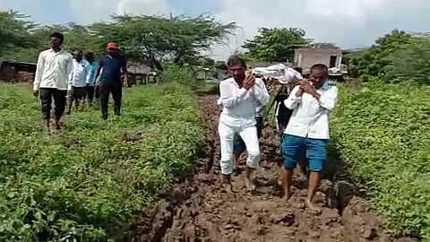 नाईलाजाने नातेवाईकांना अंत्ययात्रा चिखलातून काढण्याची वेळ आली. यामुळे नातेवाईकांनी संताप व्यक्त केला आहे.