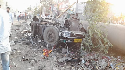 वाळूज (जि.औरंगाबाद) : वाळूज औद्योगिक वसाहतीकडून नगरकडे भरधाव जाणारा कंटेनर व लिंबेजळगावकडून पंढरपूरकडे जाणारा आयशर टेंपो यांच्यात भीषण अपघात होऊन एक जण जागीच ठार, तर एक गंभीर जखमी झाला. हा अपघात वाळूज (Waluj) जवळील गरवारे गेट समोर सोमवारी (ता.२८) पहाटे साडेबाराच्या सुमारास झाला. बँटको रोडलाईन्सचा आयशर टेम्पो (एमएच २० ईजी ०९४५) हा वाळुजकडून पंढरपूरकडे (Pandharpur) जात होता. गरवारे कंपनी समोर दुपारी झालेल्या अपघातामुळे पडलेल्या रस्त्यावरील दगडावर हा टेम्पो गेल्याने चालकाचा टेम्पोवरील ताबा सुटला. त्यामुळे हा भरधाव टेंपोविरुद्ध दिशेला गेला. (Man Died, One Serious Injured In Accident In Waluj Area Of Aurangabad)