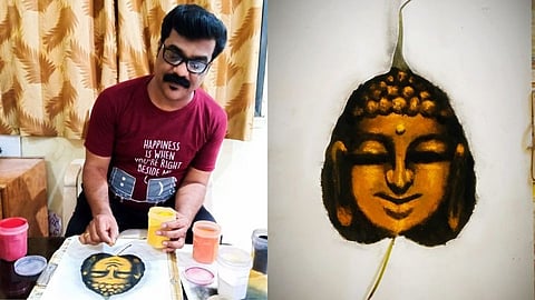 औरंगाबाद: संपूर्ण विश्वाला शांतीचा संदेश देणारे तथागत गौतम बुद्ध (gautam buddha) यांच्या जयंतीनिमित्त (, Buddha purnima 2021) औरंगाबाद येथील कर्मवीर श्री शंकरसिंग नाईक हायस्कूलचे कलाशिक्षक राजेश निंबेकर यांनी पिंपळाच्या पानावर रांगोळीच्या माध्यमातून बुद्धांची प्रतिमा साकारली आहे. पिंपळाच्या पानावर बुद्धांची रांगोळी रेखाटण्याचा हा जगातील पहिलाच प्रयोग असल्याचे डॉ. दिनेश गुप्ता (सीईओ, मेंबर ऑफ पार्लमेंट ऑफ वर्ल्ड कॉन्स्टिट्युशन असोसिएशन यूएसए) यांनी कळविले आहे.