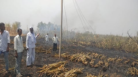 लोहगाव (जि.औरंगाबाद ) : एकीकडे ऊसाला तोड मिळत नसल्याने तर दुसरीकडे ऊस कामगार टोळ्या यंत्रणेच्या आर्थिक पिळवणूकीने उत्पादक शेतकरी हैराण झाला आहे. पैठण तालुक्यातील लोहगाव शिवारात रखरखत्या उन्हाच्या चटक्यात वीजतारा तुटल्याने भंयकर आग भडकून बारा शेतकऱ्यांचा जवळपास सतरा एकरातील आठशे टन ऊस जळून खाक झाल्याची घटना रविवारी (ता.तीन) अकराच्या दरम्यान घडली. तीन गावांतील नागरिकांनी धावाधाव करून आजुबाजूचा पन्नास एकर क्षेत्रातील ऊस आगीपासून वाचवला आहे. याबाबतची अधिक माहिती, अशी की लामगव्हाण येथील ऊस (Sugarcane) उत्पादक भागचंद गवंदे, ऋषिकेश शेलुटे यांच्या लोहगाव शिवारातील गट नंबर १९६ मधील चार एकर ऊस पीक तोडणी सुरू असताना कडक उन्हात अचानक विद्युत खांबाजवळ वीजतारेचे घर्षण होऊन तारा तुटून आग लागली असताना शेजारील गट नंबर १९७ मधील शिवनाथ शिंदे, ताराबाई कदम, हरिचंद्र शिंदे, गोरख शिंदे, बाबासाहेब शिंदे, कैलास शिंदे, गोपीनाथ शिंदे, प्रकाश शिंदे, सुभाष शिंदे यांच्या तेरा एकरातील ऊसाला एकाच वेळी आग लागुन ऊस उत्पादकाचा आठशे टनापेक्षा जास्त ऊस जळून खाक झाला आहे. (Seventeen Acre Sugarcane Burned In Lohgaon Of Aurangabad)