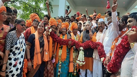 सोयगाव (जि.औरंगाबाद) : सोयगाव नगरपंचायतीच्या नगराध्यक्ष, उपनगराध्यक्षपदासाठी पिठासन अधिकारी संजीव मोरे यांच्या अध्यक्षतेखाली मंगळवारी सभा पार पडली. यावेळी नगराध्यक्षपदासाठी शिवसेनेच्या आशाबी तडवी यांचा, तर उपनगराध्यक्ष पदासाठी सुरेखा काळे यांचे दोघांचे एकमेव अर्ज प्राप्त झाल्याने सोयगाव नगरपंचायतच्या नगराध्यक्षपदी शिवसेनेच्या (Shiv Sena) आशाबी तडवी, तर उपनगराध्यक्षपदी शिवसेनेच्याच सुरेखा काळे यांची बिनविरोध निवड झाली. नगराध्यक्ष, उपनगराध्यक्ष पदासाठी विरोधी एकही अर्ज प्राप्त न झाल्याने नगराध्यक्ष आशाबी तडवी आणि उपनगराध्यक्ष सुरेखा काळे यांच्या नावाची बिनविरोध निवड झाल्याची घोषणा पिठासन अधिकारी संजीव मोरे यांनी केली. (Shiv Sena Ashabi Tadavi Elected As President Of Soygaon Nagarpanchayat Abdul Sattar)