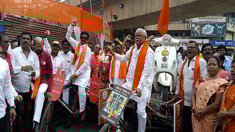 इंधन महागल्याने पेट्रोल, डिझेल वापरणे परवडत नाही दर्शवण्यासाठी माजी नगरसेवक बन्सी गांगवे सायकलीचा हातागाडा करून त्यावर दुचाकी ठेऊन सायकलीने मोर्चात सहभागी झाले होते. तर बाबासाहेब डांगे स्वयंपाकाचा गॅस ९१० रूपये झाल्याचे व त्यावर ‘ क्या हुवा तेरा वादा .....' असा उल्लेख करून गॅसचे दर कमी करण्याच्या आश्वासनाचे काय झाले असा केंद्र सरकारल जाब विचारण्यासाठी चक्क गॅस सिलेंडर घेऊन आले होते.
