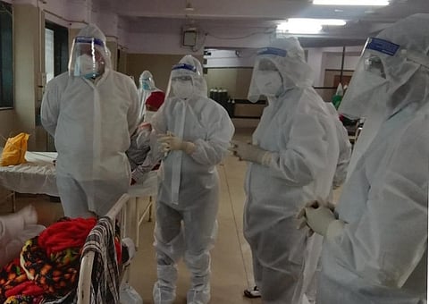 उपचार घेणाऱ्यांची संख्याही साडेचौदाशेंवर गेली आहे. दरम्यान, आरोग्य यंत्रणेकडील अपुरे मनुष्यबळ, वाढत्या संख्येमुळे उपचारासह इतर त्रुटी आहेतच. मात्र, रुग्णांनाही धीर मिळावा आणि यंत्रणेतील त्रुटी असतील, तर त्याही दुर करता याव्यात या दिशेने बुधवारी श्री.कुंभार सर्वाधिक रुग्ण उपचार घेत असलेल्या जिल्हा रुग्णालयातील कोविड रुग्णालयात दाखल झाले. पीपीई किट घालून त्यांनी जिल्हा शल्यचिकित्सक डॉ.अशोक थोरात, अतिरिक्त जिल्हा शल्यचिकित्सक डॉ.सुखदेव राठोड, डॉ.संजय राऊत व डॉ.अभिमान जाधव यांच्यासह सहाही वॉर्डात जाऊन पाहणी केली.