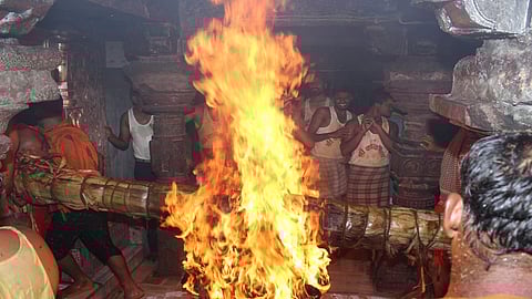 तुळजा भवानी मंदिर समितीतर्फे महंत मावजीनाथ बुवा यांना रात्री भरपेहराव आहेर करण्यात आला. यावेळी मंदिर समितीचे सरव्यवस्थापक सौदागर तांदळे, धार्मिक व्यवस्थापक सिद्धेश्वर इंतुले उपस्थित होते. महंत मावजीनाथ बुवा यांच्या वतीने तुळजा भवानी मातेची पुजा परंपरेने करण्यात आली. तुळजा भवानी मातेचे अभ्यंगस्नान शनिवारी (ता. १४) पहाटे पार पडले. तुळजा भवानी मातेच्या मंदिरात भेंडोळी उत्सवाच्या वेळी महंत मावजीनाथ बुवा आणि अन्य महंत उपस्थित होते. कमानवेसमध्ये भेंडोळीची पूजा क्षीरसागर घराण्याचे बाबा क्षीरसागर, आनंद क्षीरसागर, बुबासाहेब क्षीरसागर यांच्या हस्ते पूजा आणि आरती होऊन मानाच्या चार घागरी भेंडोळीवर अर्पण करण्यात आल्या.