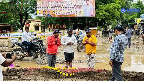 आज निर्भय महाराष्ट्र पार्टीचे छत्रपती संभाजी नगर जिल्हा संपर्कप्रमुख पांडुरंग देविदास,पैठण तालुका संपर्कप्रमुख विष्णू काळे,बिडकीन शहर प्रमुख रामनाथ चौधरी,सदस्य गणेश हिवाळे आदींच्या वतीने खड्ड्यांचे हार व गुलाल उधळून पुजन करण्यात आले.