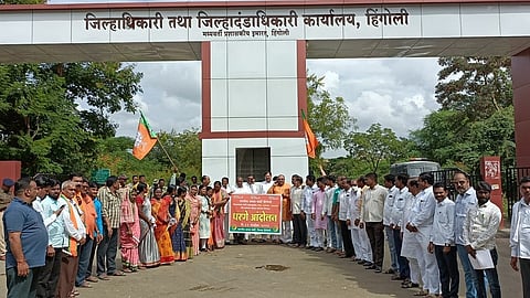 दंगल घडविणाऱ्यांवर कारवाईसाठी हिंगोलीत भाजपचे धरणे आंदोलन