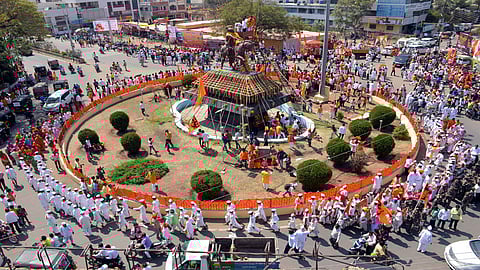 शिवजयंतीनिमित्त बुधवारी (ता.१९) पुरस्कार वितरण सोहळ्यानंतर टाळ मृंदगाच्या गजरात रिंगण करुन छत्रपती शिवाजी महाराजांना अभिवादन केले.