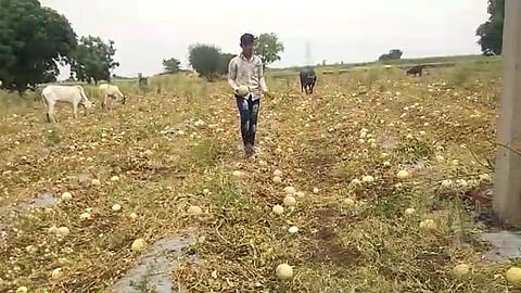 भूम (जि. उस्मानाबाद): राज्य शासनाच्या कडक निर्बंधामुळे आठवडे बाजार बंद आहेत. परिणामी, शेतमाल शेतातच सडत आहे. यात सर्वाधिक नुकसान भाजीवर्गीय आणि फळपिकांचे होत आहे. त्यामुळे लाखो रुपयांचा फटका शेतकऱ्यांना बसला आहे. तालुक्यातील वांगी खुर्द येथील रामचंद्र सांगोळे यांनी दोन एकरात खरबुजाचे उत्पादन घेतले.