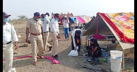 फाटक्या तुटक्या कपड्यांनी बांधलेली पाल्ल. रोजगार नसल्याने उन्हात तळपणारी बारकी बारकी पोरं. वाटी, ताटलीही अन्नासाठी तरसावित अशी परिस्थिती. या लोकांना पोलिसांची भलतीच भीती असते. मात्र कर्तव्यावरील बंदोबस्त संपताच वाहतुक शाखेच्या वतीने गरजुंना मदतीचा हात पुढे करत आहेत.