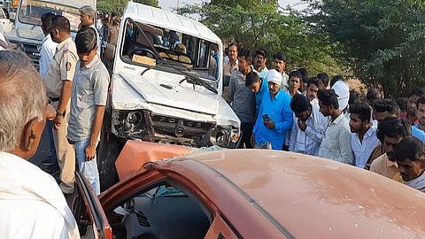 पालम (जि.परभणी) : पालम (Palam) तालुक्यातील पेठशिवणी जवळील डॉ.बाबासाहेब आंबेडकर मागासवर्गीय सूतगिरणीच्या समोरील राष्ट्रीय महामार्गावर रविवारी (ता.२६) जीप व क्रुझरच्या भीषण अपघातात एकाच कुटुंबातील चार व्यक्ती जागीच ठार झाले आहेत. क्रुझरमधील चार व्यक्ती गंभीर जखमी झाल्याची घटना घडली आहे. याबाबत सविस्तर वृत्त असे की तालुक्यातील खरब धानोरा येथील विवाहा सोहळा आटोपून क्रूझर ही लोहा-गंगाखेड या राष्ट्रीय महामार्गावरून गंगाखेडकडे (Gangakhed), तर कार पालमकडुन लोह्याकडे भरधाव वेगाने जात असताना या दोन्ही वाहनांनी समोरासमोर जोराची धडक दिल्याने झालेल्या भीषण अपघातात कारमधील चार जण (Parbhani) जागीच ठार झाले. मृत एकाच कुटुंबातील होते. अनिल लक्ष्मीकांत जहागिरदार (वय ५६), शांताबाई लक्ष्मीकांत जहागीरदार (७०), लक्ष्मीकांत देविदासराव जहागिरदार (७६), विलास साळवे ( ४७, सर्व रा. नांदेड) असे मृतांचे नावे आहेत. क्रुझरमधील मोहन शेटे (वय ३५), दिगंबर शिंगारे (४९), पंडित दयाळ (४६) यांच्यासह इतर सात ते आठ अशी गंभीर रित्या जखमी झाली आहेत. (Four People Of Nanded Residents Died In Accident In Parbhani)