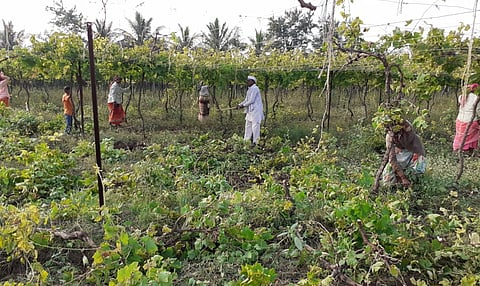 तीर्थपुरी येथील नारायण बोबडे यांनी गेल्या चार वर्षांपूर्वी मोठ्या हिमतीने द्राक्षबागेची साडेतीन एकरांत लागवड केली. लागवडीनंतर दोन वर्षांनी या बागेचे उत्पादन सुरू झाले. पहिल्या वर्षी या बागेपासून पाच लाख रुपयांचे उत्पादन मिळाले. दुसऱ्या वर्षी नऊ लाख रुपयांचे उत्पादन मिळाले. गतवर्षी या बागेपासून चांगले उत्पादन होईल या आशेने मोठ्या प्रमाणात खर्च केला परंतु ऐन बहरात आलेल्या बागेला दुष्काळाचा फटका बसला. बहरलेल्या बागेला पाणी कमी पडू लागल्याने मोठ्या प्रमाणात नुकसान झाले.