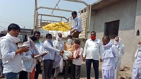बारड, (ता.मुदखेड, जि. नांदेड) ः बारड (ता. मुदखेड) जिल्हा परिषद सर्कलअंतर्गत गावात शासनाच्या याेजनांपासून वंचित असणाऱ्या गाेरगरीब, गरजू कुटुंबीयांना पालकमंत्री अशाेक चव्हाण यांच्या वतीने प्रशासन यंत्रणेच्या नियाेजनाखाली जीवनावश्यक वस्तूंचे वाटप करण्यात आले असून उपासमारीच्या विळख्यातील कुटुंबीयांच्या चुली पेटल्याने पाेटाच्या खळगीचा प्रश्न तूर्त सुटल्याने आधार मिळाला आहे. काँग्रेस कार्यकर्त्यांनी शासनाचा लाॅकडाऊन तसेच साेशल डिस्टन्सिंगचा काटेकाेरपणे पालन करण्याचा निर्धार केला असून, घरात बसा, काेराेना पळवाचा संदेश यानिमित्ताने दिला आहे.