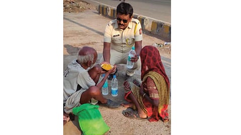 खाकी वर्दीतही माणूस असतो याचा विसर जनतेला पडू नये असे आवाहन येथील पोलिस कर्मचारी नितीन कसबे यांनी केले आहे. आम्हालाही कुटुंब आहे. जीव आहे. पण, आम्ही तुमच्यासाठी रात्रंदिवस रस्त्यावर आहोत. तुम्ही शिस्त न पाळल्यावर काठी उगारावी लागते. त्यावेळी आम्हालाही वाईट वाटते. पण, मानवजातीच्या कल्याणासाठी हा मार्ग अवलंबावा लागतो. एखादा गरजूला आम्ही आमच्या घासातला घासही देतो. आमच्यात कठोरपणा सोबत मानवता व हळवेपणाही असतो. त्याचीही चर्चा समाजमाध्यमानी करावी, अशी भावना येथील पोलिस कर्मचारी नितीन कसबे यांनी ‘सकाळ’ शी बोलताना व्यक्त केली.