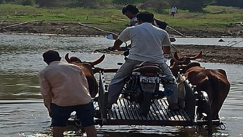 आष्टी (जि.जालना) - कोरोनाच्या पार्श्वभूमीवर लॉकडाउननंतर प्रत्येक जिल्ह्याच्या हद्दी बंद करण्यात आलेल्या आहेत. जिल्ह्याच्या सीमेवर दुसऱ्या जिल्ह्यात प्रवेश दिला जात नाही म्हणून काहींनी बैलगाडीत दुचाकी ठेवून परतूर तालुक्यातील गोदावरी नदीपात्र ओलांडायचा फंडाही सुरू केला आहे.