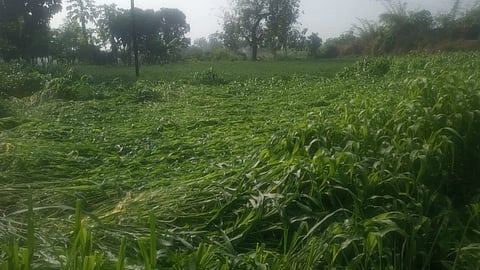 हिंगोली : जिल्ह्यात रविवारी ता.नऊ भल्या पहाटे सुरू झालेला पाऊस(heavy rain) ते साडेसहा वाजेपर्यंत सुरू होता हा पाऊस हिंगोली, सेनगाव व औंढा तालुक्यातील काही भागात झाला आहे. या पावसामुळे टाळकी ज्वारी, गहू, हरभरा, कापूस,तुर पिकांचे नुकसान झाले आहे.जिल्ह्यात मागच्या दोन दिवसापासून वातावरणात बदल(climate change) झाला आहे. ढगाळ वातावरण तसेच गार हवा देखील होती. रविवारी भल्यापहाटे एक वाजता हिंगोली शहरासह तालुक्यातील खांबाळा, भांडेगाव, साटंबा, कारवाडी, पिंपरखेड, बासंबा, सिरसम, फाळेगाव, रोहोली, सवड आदी ठिकाणी पाऊस झाला. सेनगाव तालुक्यातील आजेगाव परिसरात तर औंढा शहरासह तालुक्यातील गोजेगाव माथा, धार,रुपुर,सावळी पाडीँ येळी, केळी, हिवरखेडा, अनखळी पोटा आदी गावात पाऊस झाला.