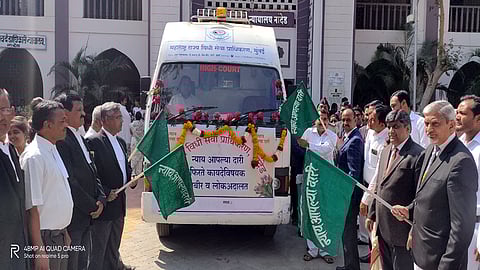 सोमवारी (ता. दोन) मार्च रोजी सकाळी साडेदहा वाजता जिल्हा व सत्र न्यायालयाचे प्रमख जिल्हा न्यायाधीश दीपक धोळकिया यांच्या शुभहस्ते फिरते लोक अदालत व कायदेविषयक शिबीर वाहनाचे उद्घाटन करण्यात आले.