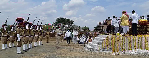 कळमनुरी (जिल्हा हिंगोली) : राज्यसभेचे खासदार तथा गुजरात प्रभारी अॅड. राजीव सातव (Rajiv Satav) यांना सोमवार (ता. 17) ला हजारो नागरिकांच्या उपस्थितीमध्ये शोकाकुल वातावरणात अखेरचा निरोप देण्यात आला. यावेळी त्यांच्या पार्थीवाला मुलगा पुष्कराज सातव (Son Pushkraj Satav) यांनी भडाग्नी दिला. अनेकांना शोक अनावर झाला. पत्नी डाॅ. प्रज्ञा आणि माजी मंत्री आई रजनी सातव यांचा टाहो उपस्थितांचा काळीज फाडून टाकणारा होता. यावेळी राज्यासह विविध राज्यातील विविध पक्षाचे पदाधिकारी मंत्री, आमदार, कार्यकर्त्यांची, उपस्थिती होती. (Last message to MP Rajiv Satav; Son Pushparaj gave Bhadagni, mourning the fans)