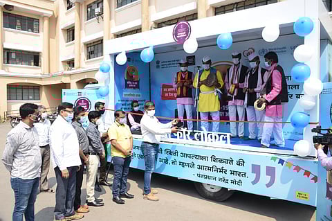 हिंगोली : केंद्र सरकारच्या माहिती व प्रसारण मंत्रालयाच्या प्रादेशिक लोकसंपर्क ब्युरो महाराष्ट्र आणि गोवा राज्य यांच्यावतीने कोरोना लसीकरण तसेच आत्मनिर्भर भारत अभियान या विषयावर बहुमाध्यम चित्ररथाच्या माध्यमातून जनजागृती अभियान राज्यभर राबविण्यात येत आहे. बुधवार ( ता. १७ ) जिल्ह्यात बहुमाध्यम जनजागृती अभियानाची सुरुवात येथील जिल्हाधिकारी कार्यालयात करण्यात आली.