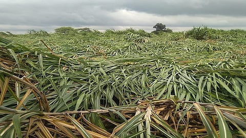 ऊस लागवड करण्यासाठी हेक्टरी तीस हजार रूपये खर्च झाला आहे. त्यात बेने, खुरपणी, खत, लागवड आदीवर खर्च झाला आहे. ऊभा ऊस असता तर एकरी चाळीस टन ऊस निघत होता.पंरतू आता ऊस आडवा पडल्याने ऊसाला पाणी व्यवस्थित पोहचत नाही. उंदीर मागे लागल्यावर एकरी वीस टन सुद्धा ऊस हाताला लागणार नाही. शासनाने पंचनामे करुन नुकसान भरपाई द्यावी. - सत्यवान पाटील, ऊस उत्पादक शेतकरी.