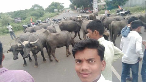 मराठा समाजाला आरक्षण मिळावे या मागणीसाठी संपूर्ण जिल्हयात वेगवेगळे आंदोलन केले जात आहेत. कुठे भजन, कुठे बैलगाड्या आडव्या लावून चक्काजाम तर कुठे रस्त्यावर झाडे आडवे टाकून आंदोलन केले जात आहे. परंतू कोल्हा (ता. मानवत) येथील ग्रामस्थांनी त्यांच्या मालकीच्या गाई, म्हशी, बैल, कारवडी राष्ट्रीय महामार्गावर सोडून दिल्या आहेत. ही जनावरे रस्त्यावरच बसून आहेत. त्याच ठिकाणी त्यांना चारा पाण्याची व्यवस्था देखील करण्यात आली आहे.