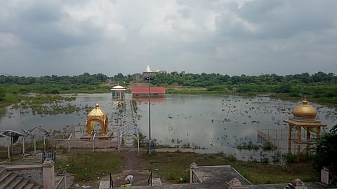 गेवराई (बीड) : पैठण येथील जायकवाडी धरणाचे सोळा दरवाजे उघडून गोदावरी पात्रात पंधरा हजार दोनसे तेरा क्युसेस पाणी सोडण्यात आले आहे. दरम्यान नगर आणि नाशिक जिल्ह्यात पावसाची संततधार सुरु असून तेथील धरणे पूर्ण भरली आहेत. त्यामुळे जायकवाडी धरणात मोठ्या प्रमाणावर पाण्याची आवक सुरु झाली आहे. गोदावरी नदीपात्रात पाणी सोडल्याने तालुक्यातील साडे तीन पिठापैकी एक असलेल्या राक्षसभुवन येथील शनि महाराज यांची मुर्ती पाण्यात गेली आहे.