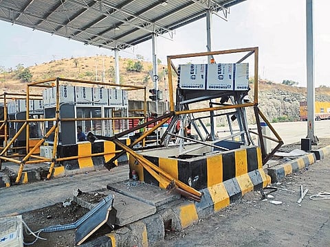 राष्ट्रीय महामार्ग रस्ता चौपदरीकरणाचे काम पूर्ण झाले नसताना तीन फेब्रुवारीला तलमोड गावाजवळ पथकर नाका सुरू करण्यात आला आहे. चौपदरीकरणाचे काम दर्जेदार करण्याकडे संबंधित कंपनीकडून सुरवातीपासुनच दुर्लक्ष झालेले आहे. रविवारी पहाटे पथकर नाक्यावरील फास्टॅगच्या मार्गाने जाणाऱ्या कंटेनरने (एचआर- 55, क्यू- 0367) जोरदार धडक दिल्याने केबिन क्रमांक चारचे मोठे नुकसान झाले.
