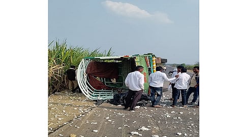 जातेगाव (जि.बीड) : कापूस खरेदी करून दुसरीकडे खरेदी केलेला मजूरासह कापूस भरण्यासाठी चाललेला भरधाव वेगातील टेम्पो पलटी झाला. यात टेम्पोतील एक जण ठार, तर अन्य दहा मजुर जखमी झाल्याची घटना रविवारी (ता.दोन) गेवराई-माजलगाव (Beed) राज्य रस्त्यावरील सुर्डी बुद्रुक येथे घडली आहे. जखमींपैकी एकाची प्रकृती चिंताजनक असल्याने पुढील उपचारासाठी त्याला औरंगाबाद (Aurangabad) येथे हलविण्यात आले आहे.टाकरवण (ता.माजलगाव) येथील कापसाचे खासगी व्यापारी यांनी गोळेगाव (ता.गेवराई) येथे खरेदी केलेला दहा ते पंधरा क्विंटल कापूस भरुन टेम्पो हा दहा ते बारा मजूरासह पुन्हा टाकरवणकडे गेवराई-माजलगाव राज्य रस्त्यावरून (Accident In Beed) भरधाव वेगात चाललेला टेम्पो सुर्डी बुद्रुक (ता गेवराई) जवळपास येताच अचानक चालकाचा ताबा सुटल्यामुळे पलटी झाला. (One Man Died, Ten Serious Injured In Accident In Beed)