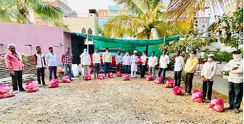 मंगल कार्यालय, जेवणाचा खर्च यातून मोठ्या प्रमाणात बचत झाली. या बचत झालेल्या पैशातून अन्नधान्याचे कीट बनवण्यात आले. यामध्ये गहू, ज्वारी, तांदूळ आदी जीवनावश्यक वस्तूंचा समावेश होता. हे किट शहरात काम करणाऱ्या गरजू बांधकाम मजुरांना वाटप करण्यात आले. सोशल डिस्टनसिंग पाळत एकशे दहा कुटुंबीयांच्या अन्नधान्याचे किट घरपोच दिले.