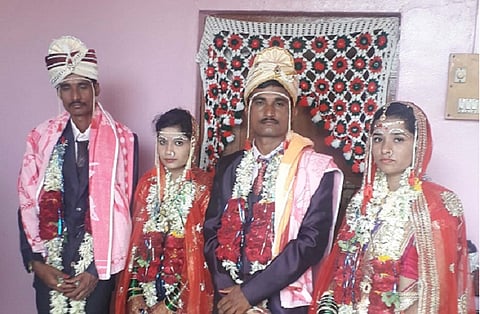 लॉकडाउनच्या काळातही सरकारच्या नियमानुसार विवाहसोहळे पार पडत आहेत. केसरजवळगा येथील गोविंदराव पटवारी यांचे सुपुत्र रवींद्रनाथ आणि नितीन या दोन्ही मुलांचा विवाह गुरुवारी साधेपणाने घरात आयोजित छोटेखानी कार्यक्रमात पार पडला. खरोसा (ता. औसा) येथील चंद्रकांत यशवंत मुसांडे यांची मुलगी वनिता हिचा रवींद्रनाथ याच्यासोबत, तर मंटगी (ता. आळंद, कर्नाटक) येथील सुभाष होलसुरे यांची मुलगी अश्विनी हिचा विवाह नितीनबरोबर विवाह झाला.