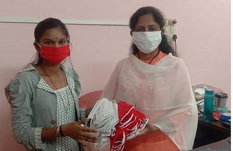 कळंब (जि. उस्मानाबाद) : लातूर येथील शासकीय निवासी महिला तंत्रनिकेतनमध्ये ड्रेस डिझायनिंग अँड गारमेंट मॅन्युफॅक्चरिंग कोर्सचे प्रशिक्षण घेणाऱ्या शहरातील वैष्णवी विक्रम मोरे हिने लॉकडाउन काळामध्ये हजारो मास्क तयार करीत रुग्णालय, पोलिस ठाणे आदी ठिकाणी मोफत वाटप करीत सामाजिक बांधिलकी जपली आहे. नुकतेच तिने गरजूंना वाटप करण्यासाठी नायब तहसीलदार परवीन पठाण यांच्याकडे शंभर मास्क सुपूर्द केले आहेत.
